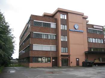 Denne bygningen, den første vi passerer langs Alna forbi Bryn stasjon, skal bygges på og bli 8 etasjer høy.