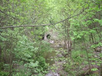 Her forsvinner Tokerudbekken inn under jernbanen.